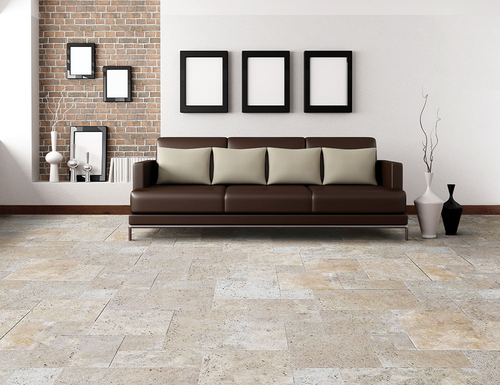 Versailles Pattern Brushed & Chiseled • 18 X 18 Filled & Honed • 16 X 16 Tumbled • 16 X 24 Tumbled